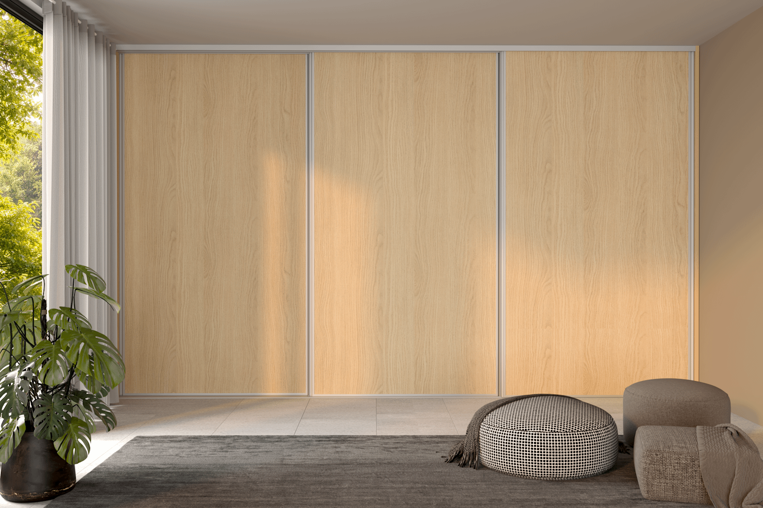 Den tredelte skydedør optimerer garderobepladsen og sikrer maksimal fleksibilitet, samtidig med at den er nem at betjene takket være den robuste konstruktion og det støjsvage hjulsystem. Modul One 3 låger er ideel til mellemstore garderober, hvor du ønsker en brugervenlig og elegant løsning uden unødvendige detaljer.