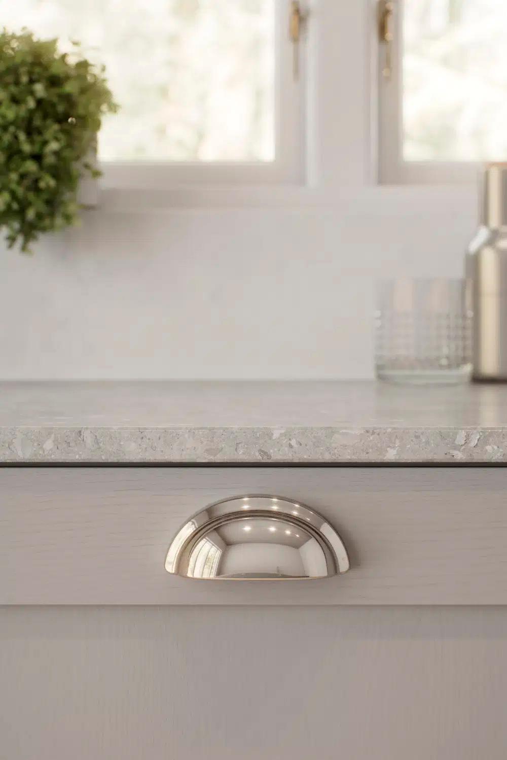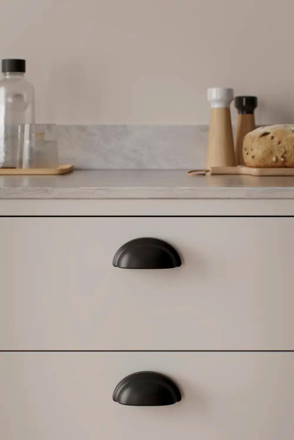 Dette greb er inspireret af naturens organiske former. Designet trækker på de bløde, runde silhuetter, man finder i frugter og grøntsager, og skaber en form, der føles naturlig og behagelig i hånden. De organiske kurver af disse naturlige elementer tilbyder en tidløs skønhed, som set i klassisk design, hvor enkelhed og elegance går hånd i hånd med det organiske.