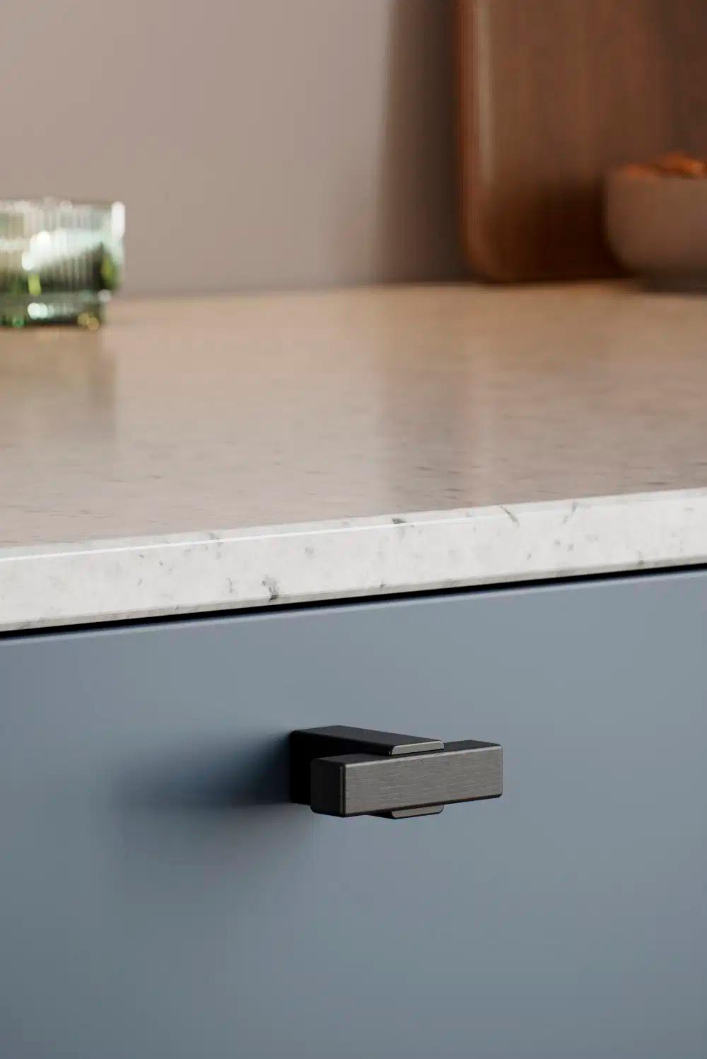 Furnipart - Segment - greb knop i zink og bejdset eg mat sort L44mm H33mm B15mm