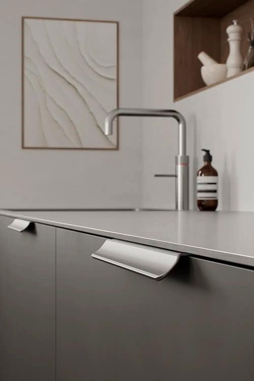 Inspireret af klassisk arkitektur præsenterer Volet en lineær fløjtet front med bløde afrundede hjørner, hvilket skaber illusionen af at svæve uafhængigt af dens bageste støtte. Det harmoniske samspil mellem disse to designelementer fungerer som én, og giver både en markant æstetik og fremragende funktionalitet.