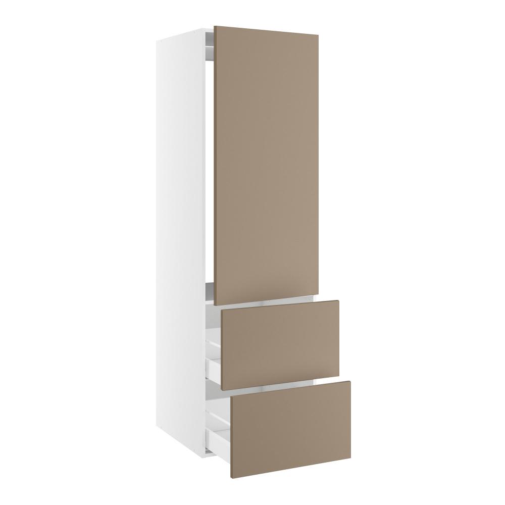 Højskab, t/integreret køl med fladhængsler, 1244mm låge, u/hængselsboring, 2 skuffer H:348mm, hul: 1224mm. H:1952 B:600 D:580