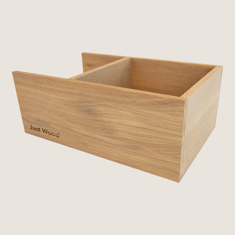 Just Wood skuffeinddeler leveres færdigsamlet og kan med fordel bestilles sammen med dit badmøbel for en gennemført og funktionel helhed.