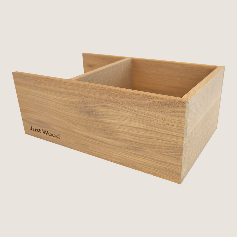 En Just Wood skuffeinddeler i massivt, olieret egetræ er en elegant og praktisk løsning, der fuldender dit Just Wood badmøbel. Skuffeinddeleren passer i alle Just Wood badskuffer uden udskæring til afløb. Bemærk, at den ikke er egnet til bad højskabe.