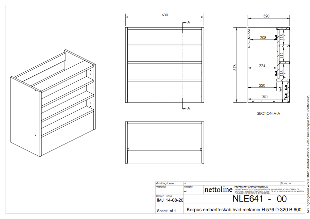 Kitchn Emhættekorpus m/aftag bagplade, hvid melamin H:576 D:320 B:600