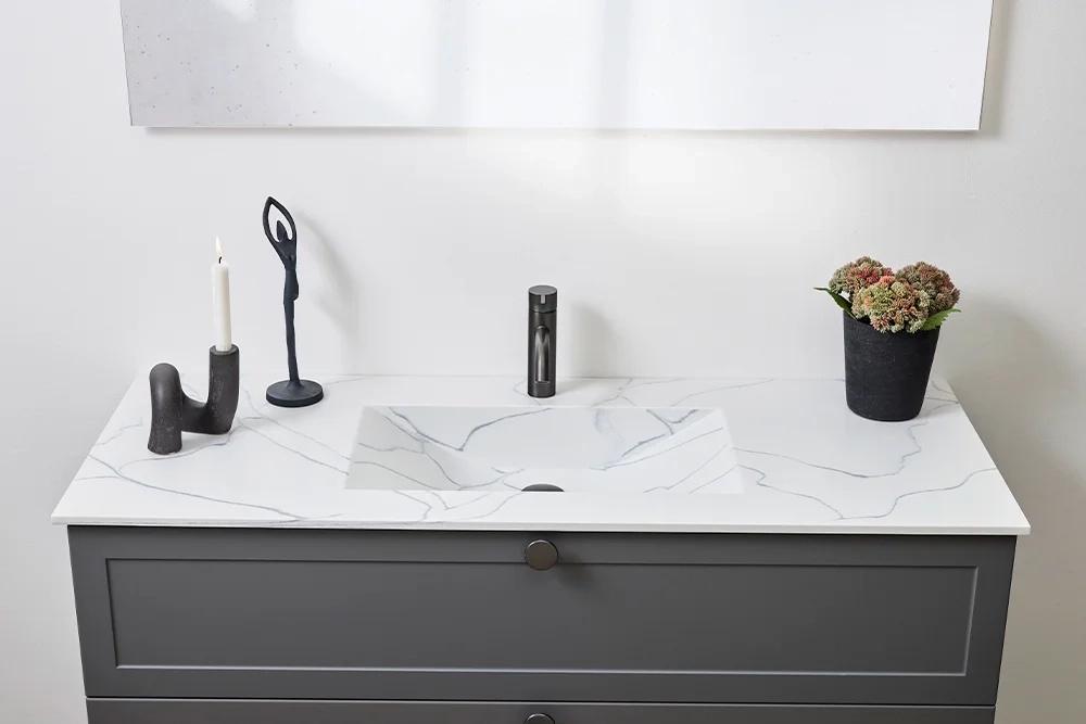 Marmorlines nyeste produkt serie, i marmor og -travetin look med Solid Surface egenskaber. Nemt at vedligeholde og rengøre. Tåler alle husholdningsrengøringsmidler og lette kalkfjernere. 12 mm gennemfarvet komposit materiale, som bearbejdes til bad bordplade med vask. Solid Art-Line leveres i fem flotte farver.