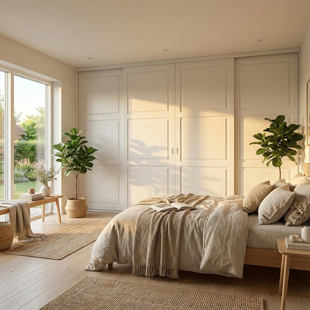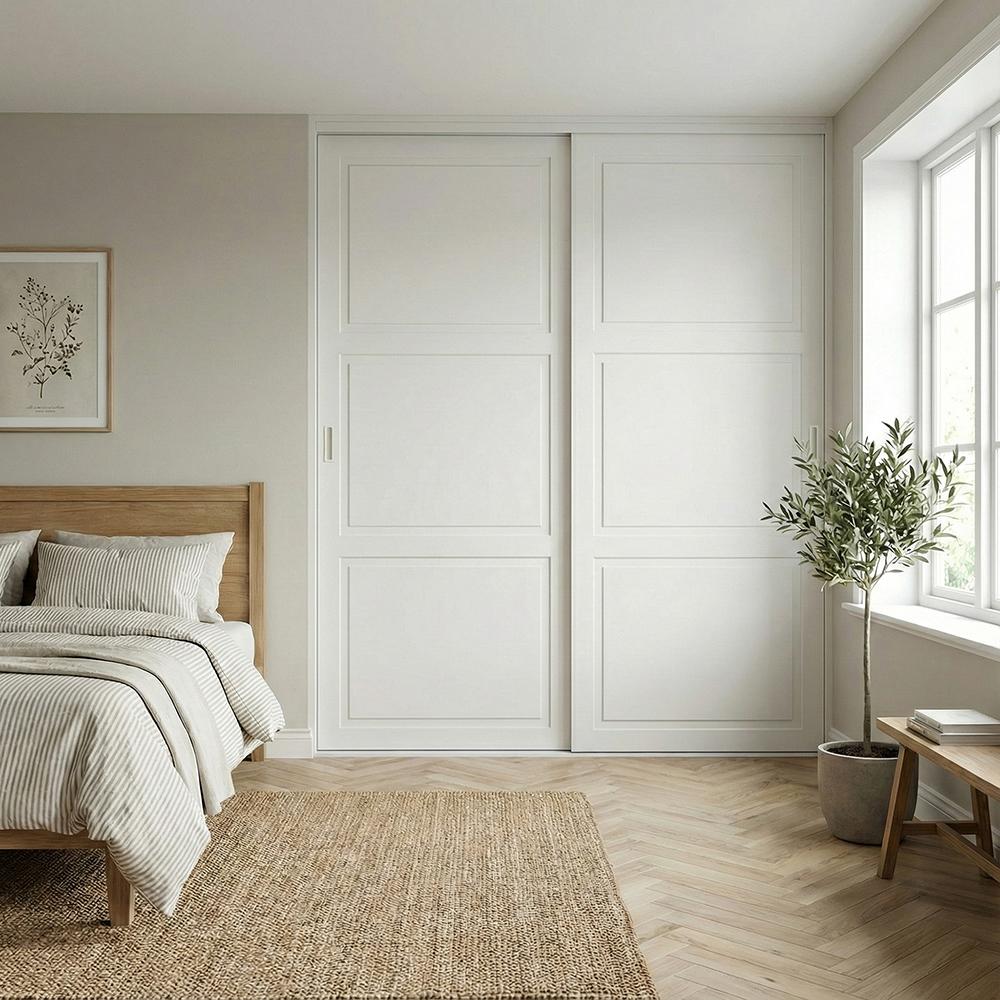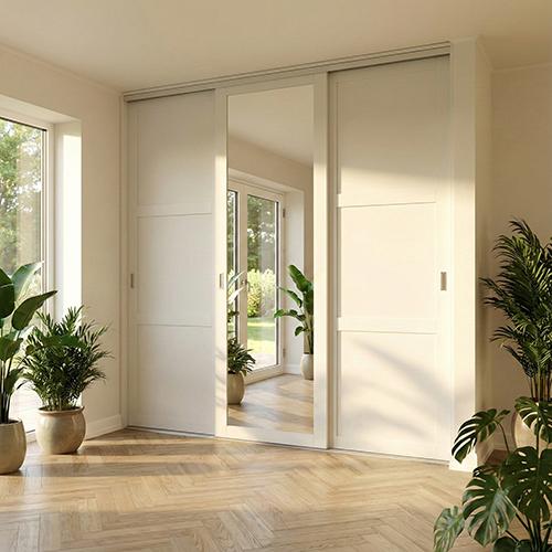 Mogensen Contoura Almue Folie skydelåger på mål til garderobe med 4 låger og softclose - Total bredde 176 til 460 cm.