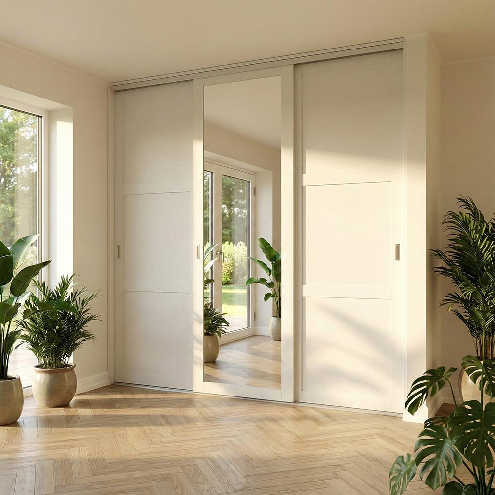 4 skydelåger fra bredde 176 - 460 cm. Prisen er inklusiv skinnesæt og beslagskasse.