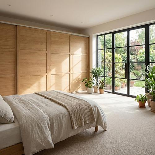 Mogensen Contoura Massiv Eg skydelåger på mål til garderobe med 3 låger og softclose - Total bredde 134 til 743 cm.
