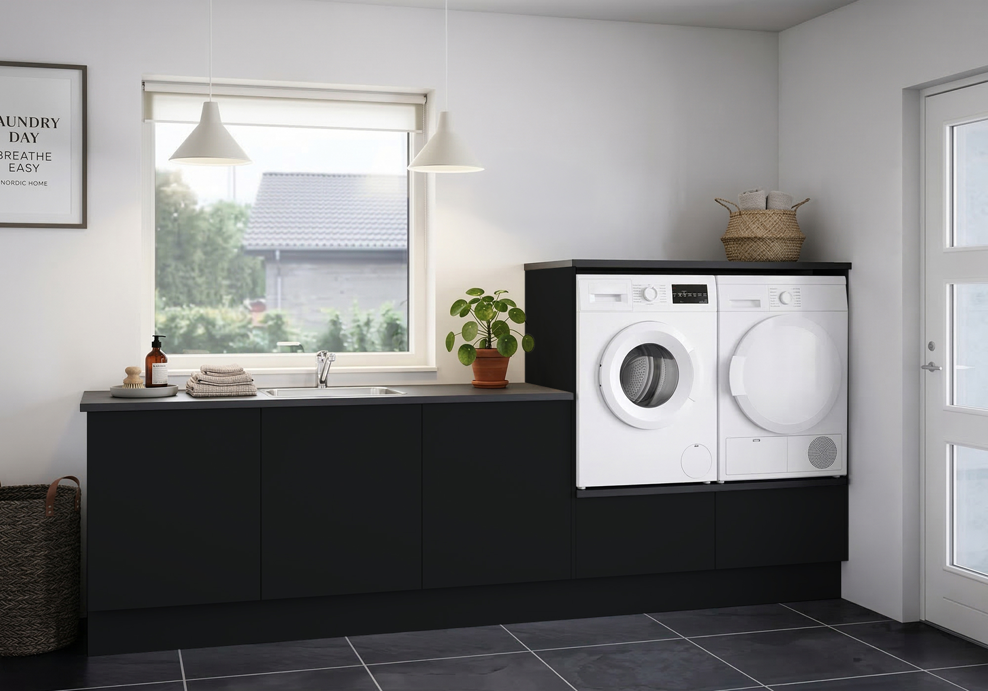 Multi-Living Bryggers sæt med Cibo Nero | Underskab m. skuffe, Vaskeskab, Gavle, Sokkelsæt - Bryggers sæt 23