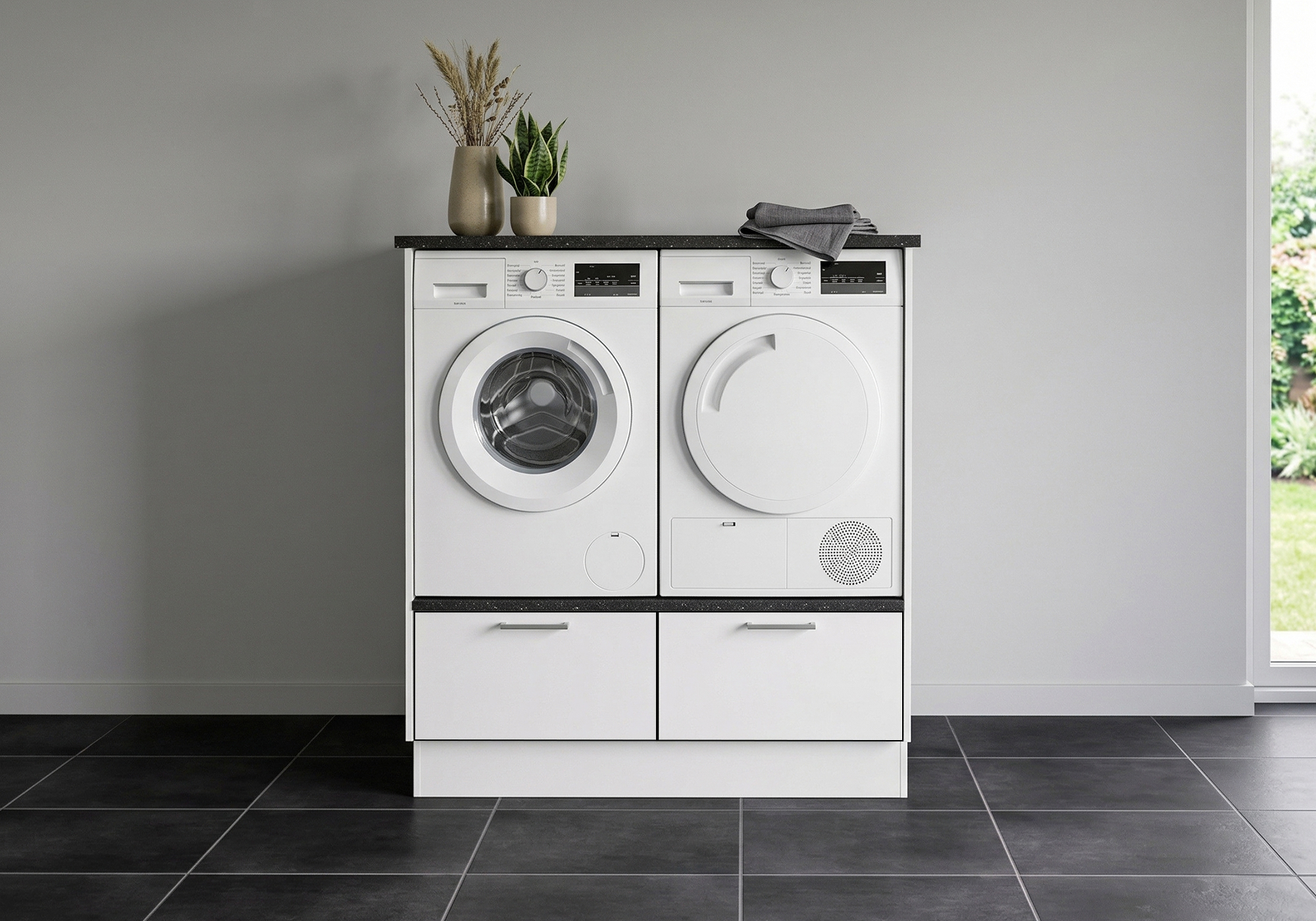 Multi-Living Bryggers sæt med White/Black line | Underskab m. skuffe, Vaskeskab, Gavle, Sokkelsæt - Bryggers sæt 1