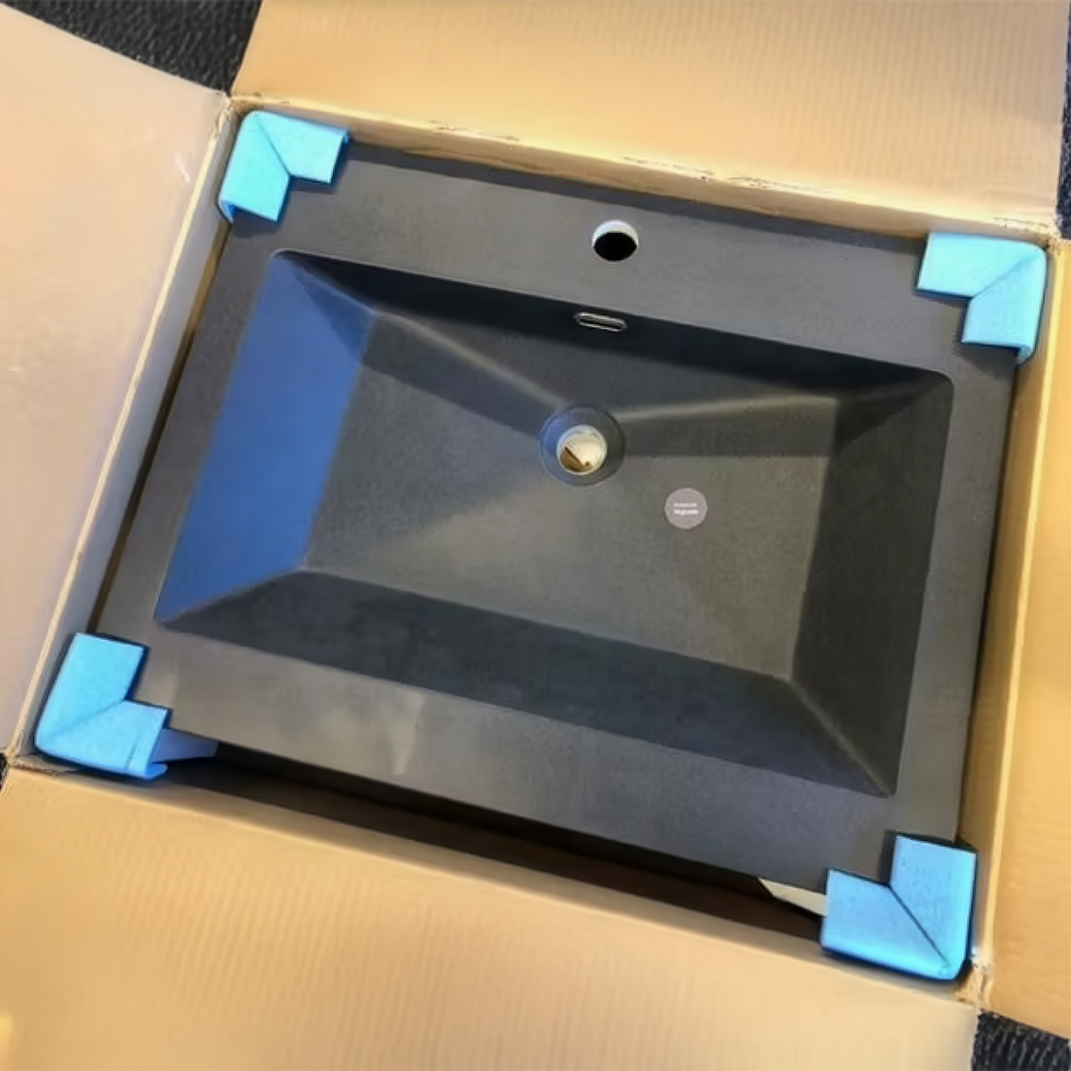 Støbt sten bordplade inkl. hanehul samt vask. Vask er altid placeret i midten.