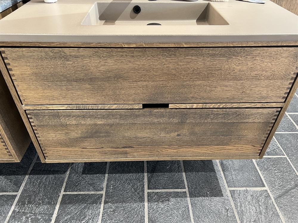 Udstillingsmodel - Just Wood 100 cm mørkolieret badmøbel med 2 skuffer og Betonex Sofia vask