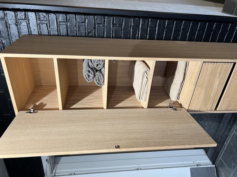 Udstillingsmodel - Just Wood 43,8 cm lysolieret bad højskab med 2 skuffer og låge